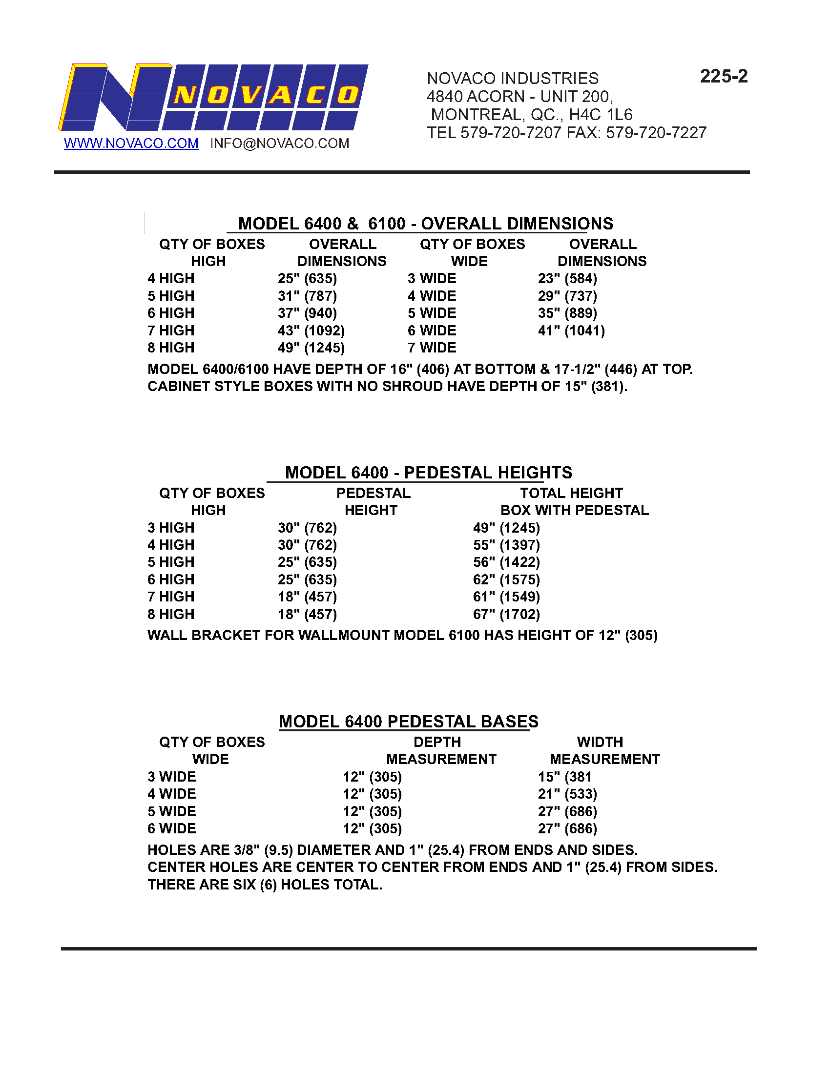 Model 6100/6400 – Dimensions