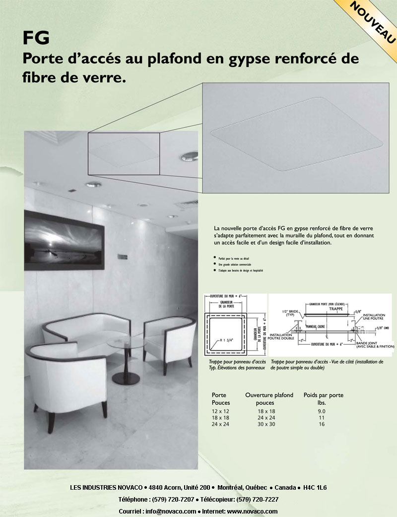 Portes d'accès encastrées pour cloison sèche ou faux plafond
